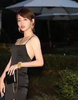 服装方面,这条吊带小黑裙无疑是“简约即高级”的最佳注解。纤细的吊带设计毫不保留地展现出她优越的肩颈线条和锁骨,裙身流畅贴合的剪裁勾勒出曼妙的身姿曲线。