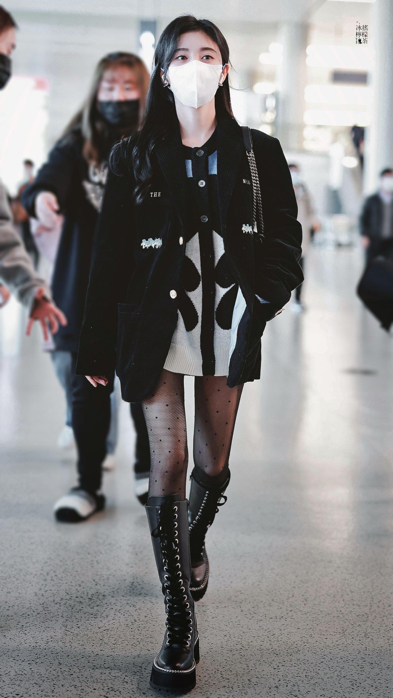 鞠婧祎机场黑丝美腿抓拍气质优雅获赞